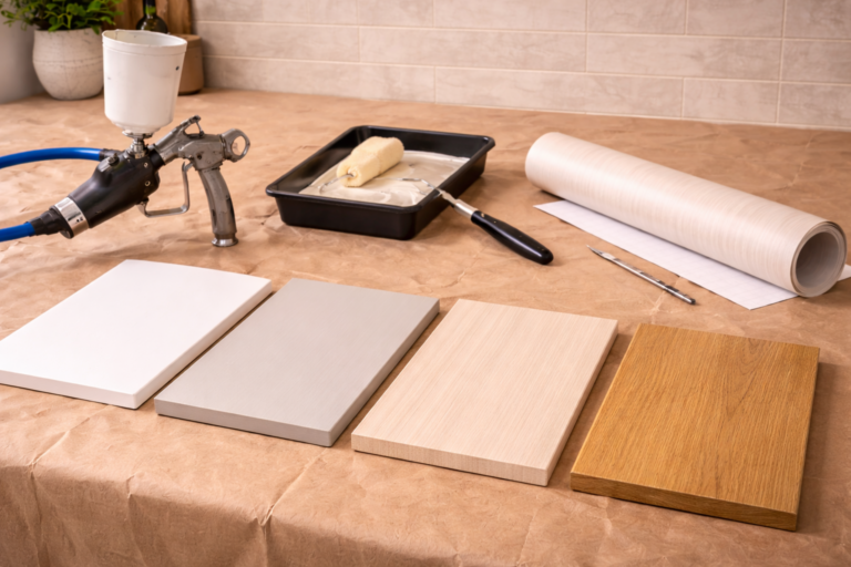 Begin bij keuken opknappen: stappenplan zonder nieuwe keuken voor een route die overzicht geeft. Als je twijfelt tussen methodes voor een nieuwe look, zet spuiten vs verven vs folie: verschillen en voorbereiding de opties naast elkaar. Wie een snelle transformatie wil, kan daarna verder lezen in keuken wrappen: zelf doen en voor/na.