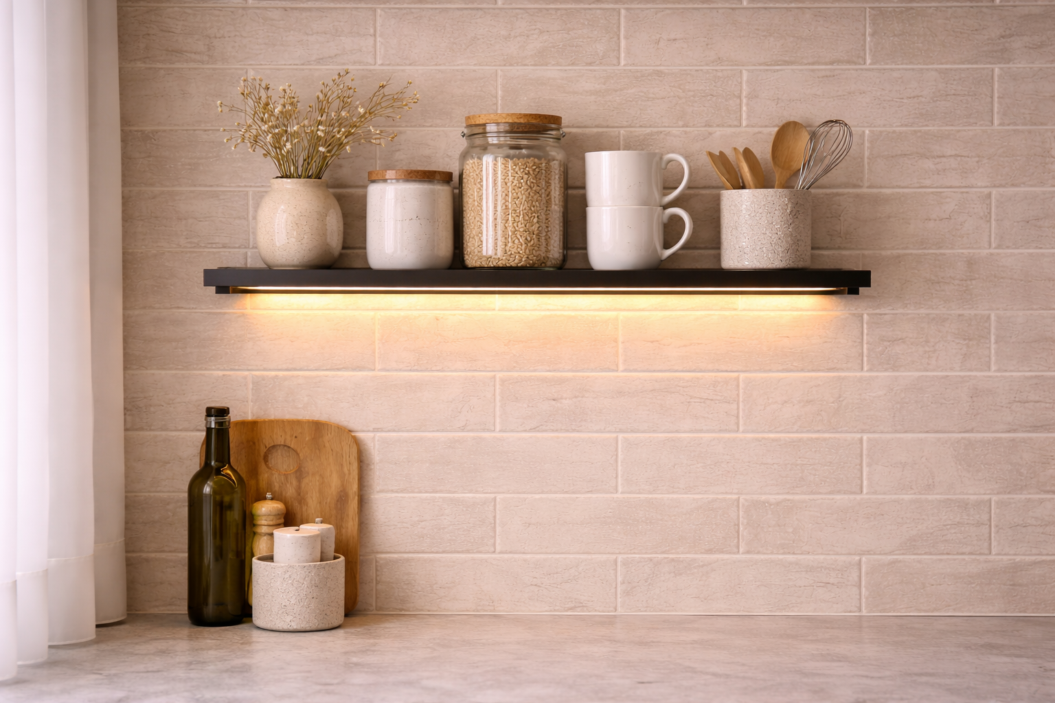 Is een wandplank met verlichting handig in een kleine keuken?